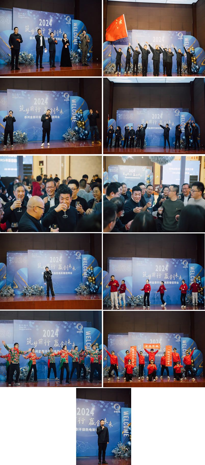 时光如梭,一年的工作转瞬已成为历史。2023年已成为过去,2024年迎面而来。新的一年意味着新的起点,新的机遇和挑战。集团工会主席、副总经理周志丹携分别代表集团、热电事业部、建材子公司、检测子公司的4位主持人开场致辞,回顾过往所取得的成绩,展望未来美好前景,并对员工致以衷心的感谢和新年的祝福!董事会主席顾金祥、董事长顾鼎对公司2023年的工作给予了充分肯定及高度的评价,同时希望大家再接再厉,助推公司未来发展更上新台阶。董事会的肯定和鼓励让全体员工信心满满、斗志昂扬,我们为“金泰人”的身份而感到骄傲!
